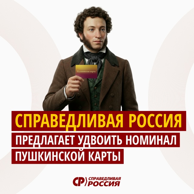 СПРАВЕДЛИВАЯ РОССИЯ предлагает удвоить номинал Пушкинской карты