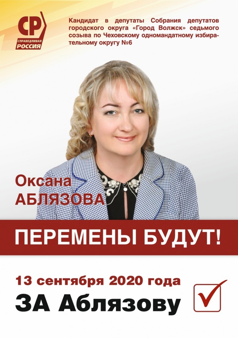 НАШ ВЫБОР – Оксана АБЛЯЗОВА, кандидат в депутаты Городского собрания Волжска по Чеховскому избирательному округу №6!