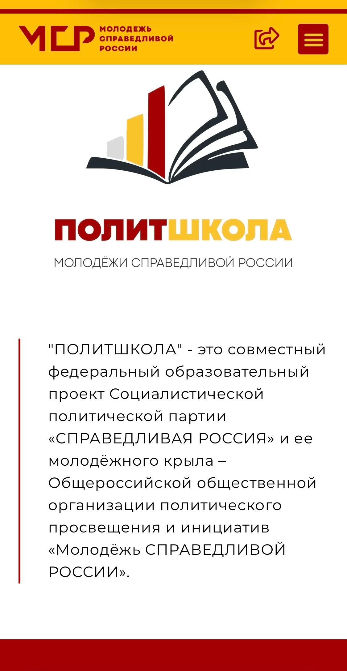 Именно поэтому мы приглашаем окунуться в мир знаний и опыта, стать частью уникального образовательного проекта – четвёртого сезона ПолитШколы партии СПРАВЕДЛИВАЯ РОССИЯ.