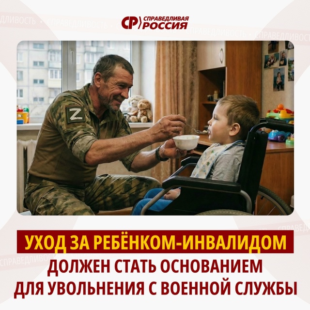 "Но у воспитывающих детей с инвалидностью такой возможности нет. Хотя уход за ребёнком-инвалидом требует особого внимания, часто со стороны обоих родителей", – подчеркнул Сергей Миронов.