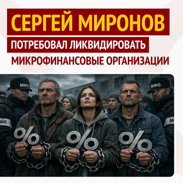 "Когда лоббисты из Минфина и ЦБ пытаются представить "чёрных кредиторов" как худшую альтернативу "легальным" МФО – это не более чем игра в доброго и злого полицейского. Проституция и наркоторговля тоже уходят в тень, но это же не повод их легализовать! Наша фракция всегда будет настаивать на полном запрете МФО", – заключил Сергей Миронов.