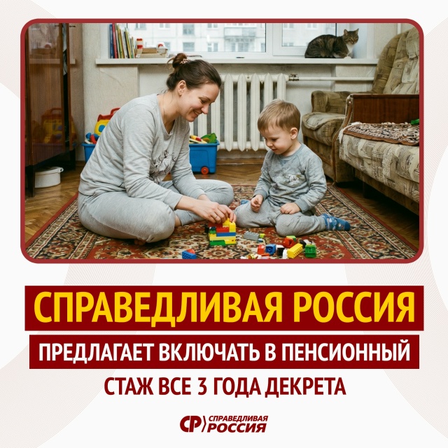 "СПРАВЕДЛИВАЯ РОССИЯ" предлагает включать в пенсионный стаж все 3 года декрета